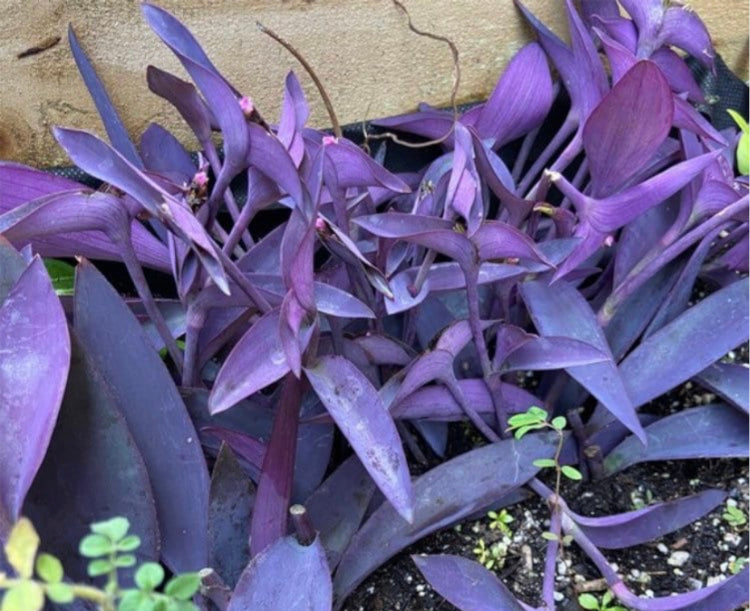 Purple Heart. 4 Healthy fully rooted in one pot or 1 cuttings, unrooted option available. Your plant will come with roots planted in 4’ pot. Purple Wandering Jew’s are a Beautiful Perennial Plant with Dark Purple Foliage and Dainty Pink flowers that bloom in Summer, they are very fast growers. They are seen and used inside homes in hanging pots or potted in pots on patios and outside in landscaping
